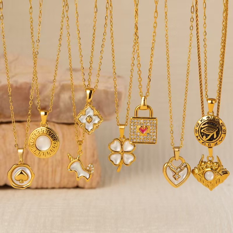Vintage Real Gold Pendant Titanium Steel Necklace Melad Style 2025 Advanced New Women's Oil Smudge Heart Versatile Necklace