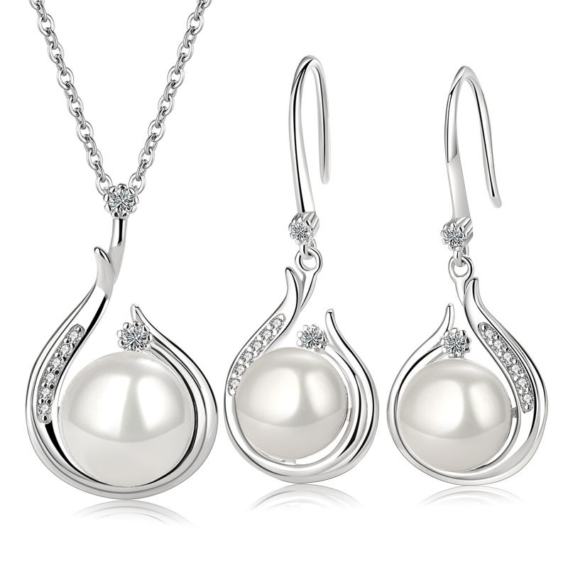 Internet Celebrity Live Broadcast New Product Hot-Selling Set Simulated Freshwater Pearl Shell Beads Full Diamond Earrings for Women Luxury Pendant Necklace