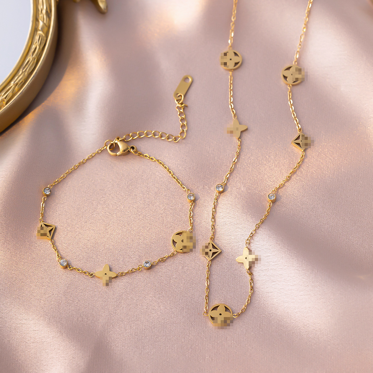 Exquisite Hollow Lucky Four-leaf Clover Titanium Steel Necklace Women's Fashion Light Luxury High-end Fashionable Clavicle Chain suit Without Falling