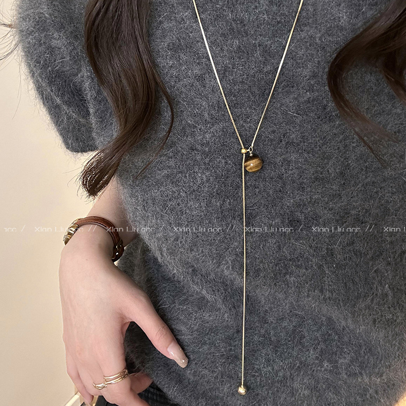 Design sense tiger eye stone autumn and winter long sweater chain 2024 new temperament light luxury high-end necklace women's accessories