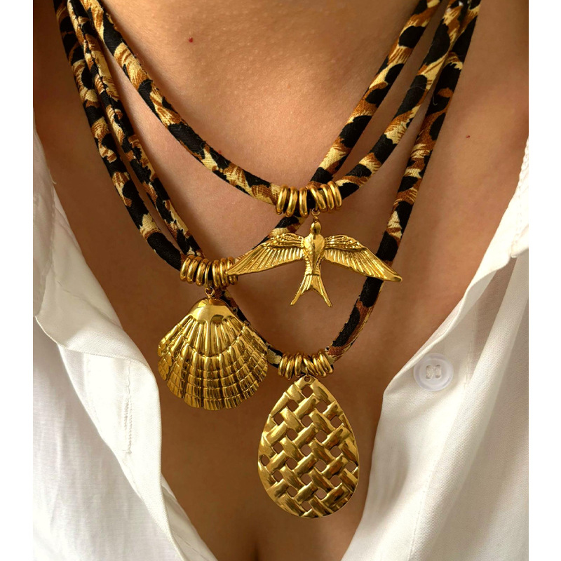 Cross-Border Trendy Stainless Steel Pendant Leopard Print Velvet Rope Women's Design Necklace Autumn and Winter Versatile Women's Necklace