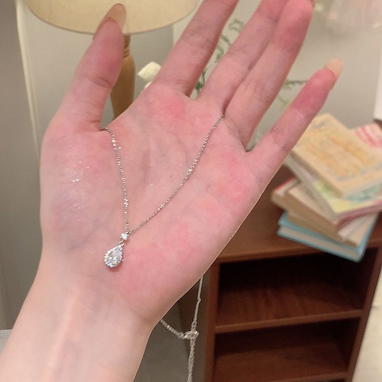 925 Platinum-Plated Water Drop Zircon Necklace for Women, Light Luxury Niche 2023 New Popular Beauty Tear Collarbone Chain