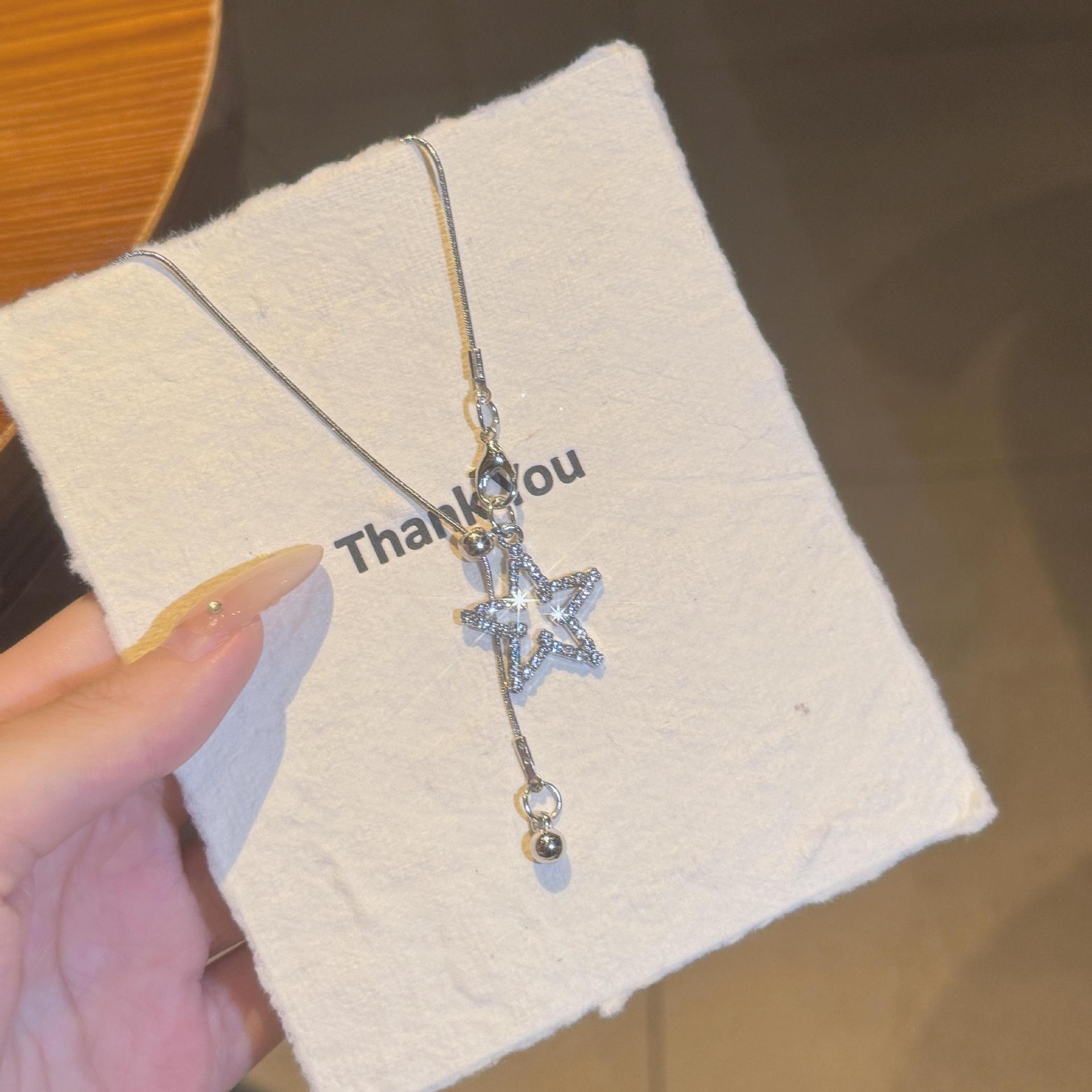 Stainless Steel Necklace, High-End Pull-Out Five-Pointed Star Long Necklace, Women's Niche Design Clavicle Chain Sweater Chain