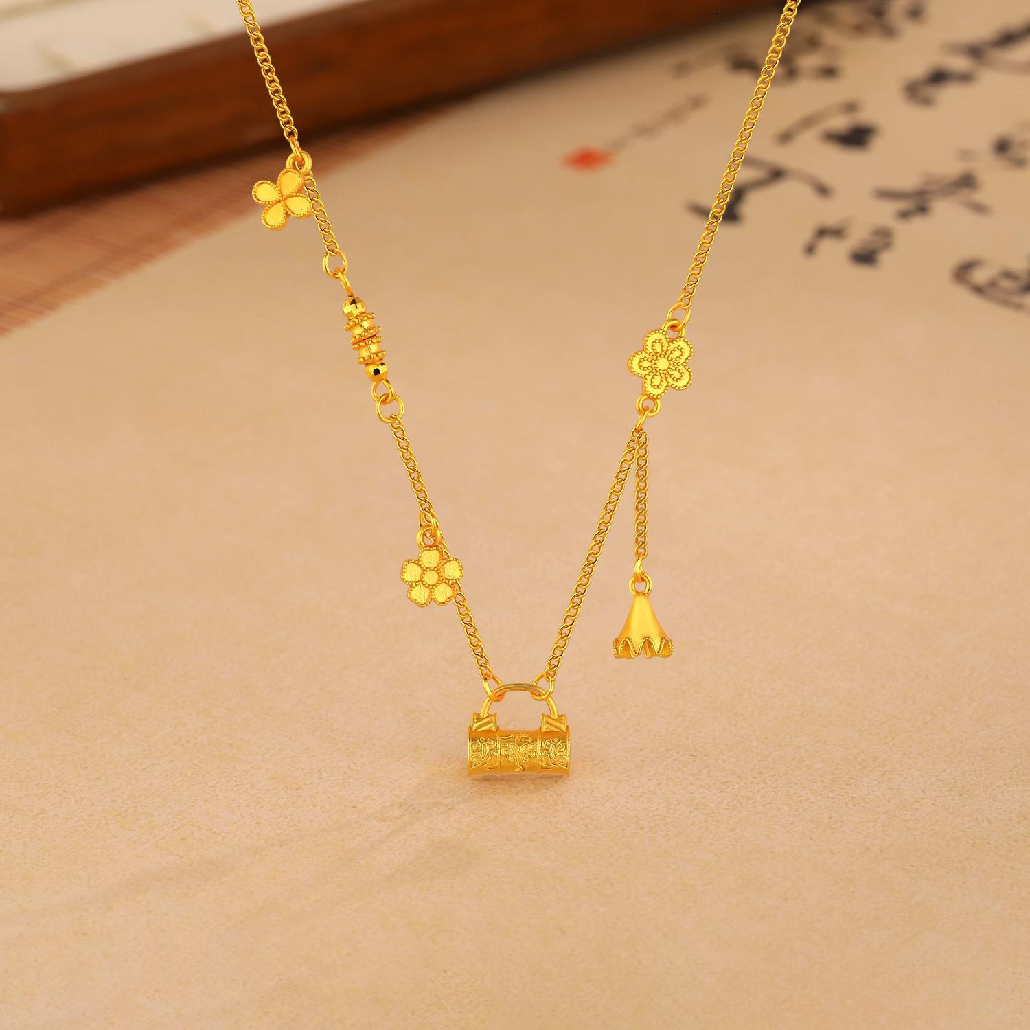 Filigold Flower Lock Bag Necklace Women's Fashion Elegant High-end Sense Four-leaf Clover Tassel Design 2024 New Clavicle Chain