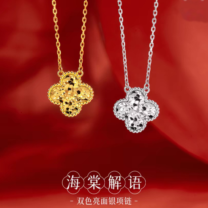 Crushed Ice Four-Leaf Clover Necklace Crushed Ice Women's Clavicle Chain Niche Accessible Luxury High-End Versatile New Broken Silver Gift