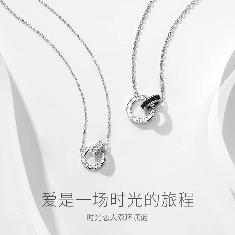 Time Lovers Double-ring Couple Necklace Women 2023 New Fashion Light Luxury ins Style Niche Design Collarbone Chain