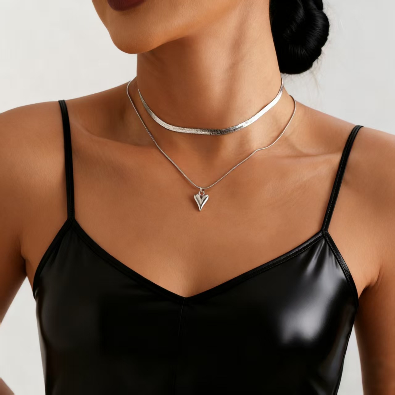 European and American Cross-Border Jewelry Heart Pendant Necklace Women's Design Clavicle Chain Fashion Simple Snake Bone Chain Double Layer Necklace