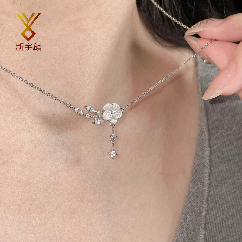 Japanese and Korean Style Elegant Fashion Small Fresh Micro-inlaid Zircon Clavicle Chain Internet Celebrity Distinctive Light Luxury Design Sense All-match Neckchain for Women