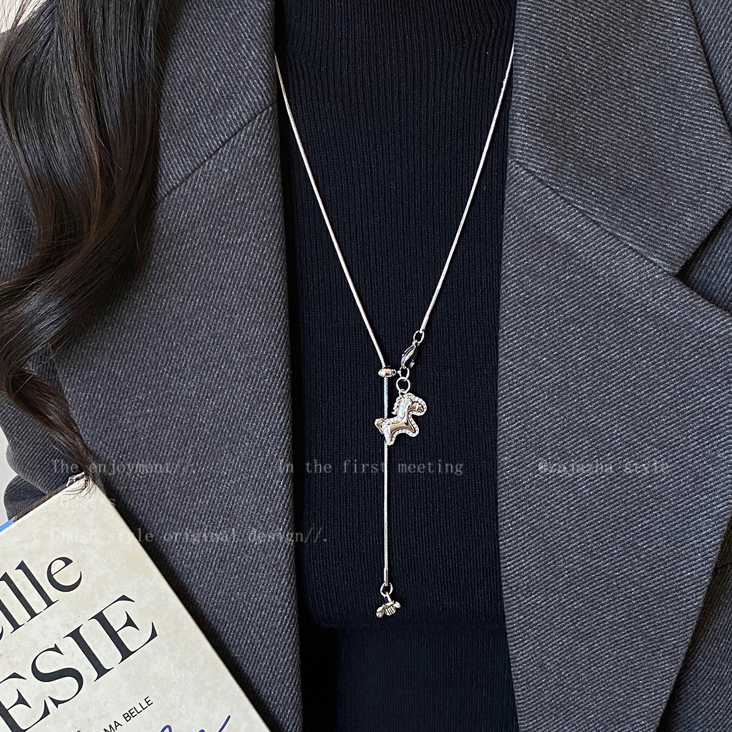 "Get Rich Immediately" Silver Pony Long Necklace for Women in Autumn and Winter, High-End, High-End, Accessible Luxury Sweater Chain