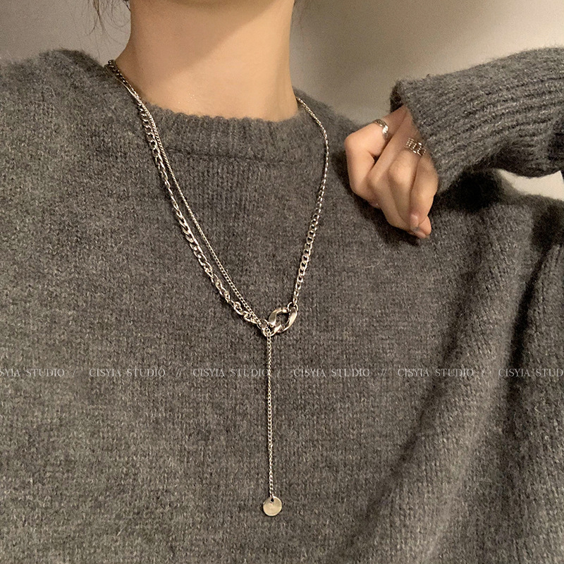 Simple Niche Geometric Round Triangle Pull-out Long Necklace Women's Ins Elegant All-match Neck Chain Woolen Chain