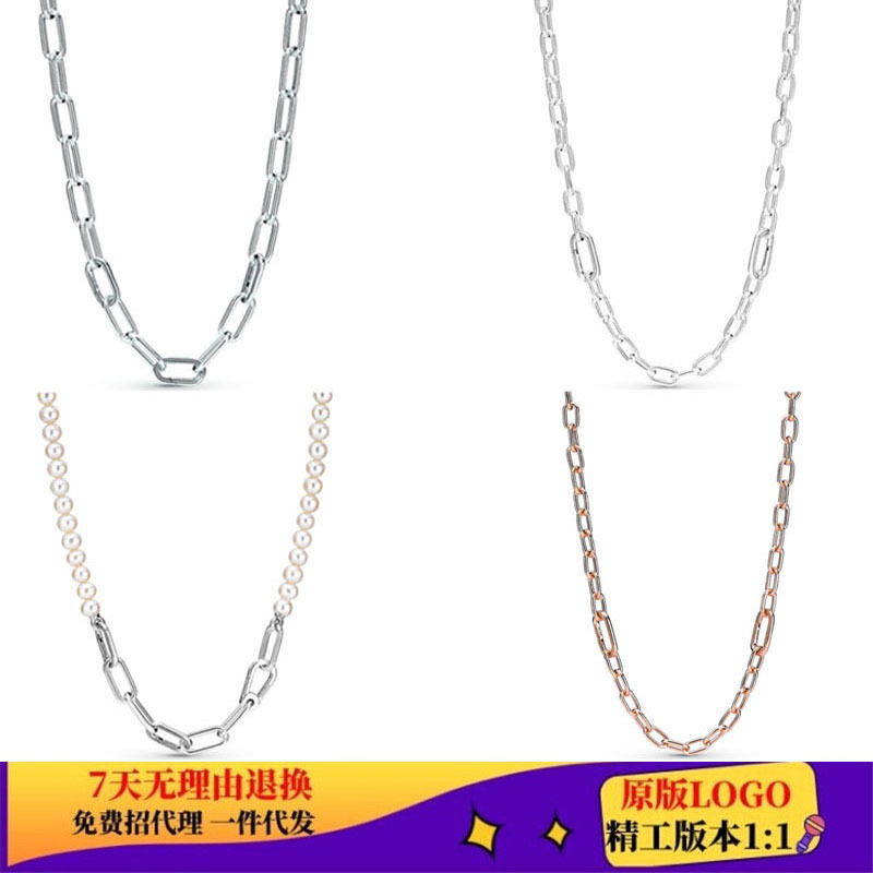 Pandora White Copper Silver Plated Foreign New Freshwater Cultured Pearl Me Clavicle Chain Temperament Women's DIY Necklace