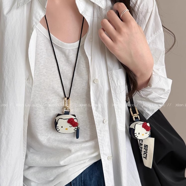 Cartoon Hello Kitty Leather Keychain Necklace High-Value Glasses Clip Girly Sweet Clavicle Chain Accessory Choker