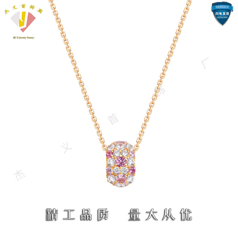 Pink Diamond Gradient Passepartout Necklace Women's Second-Hand New Accessories Fashion Pendant Sweet Clavicle Chain Rose Gold