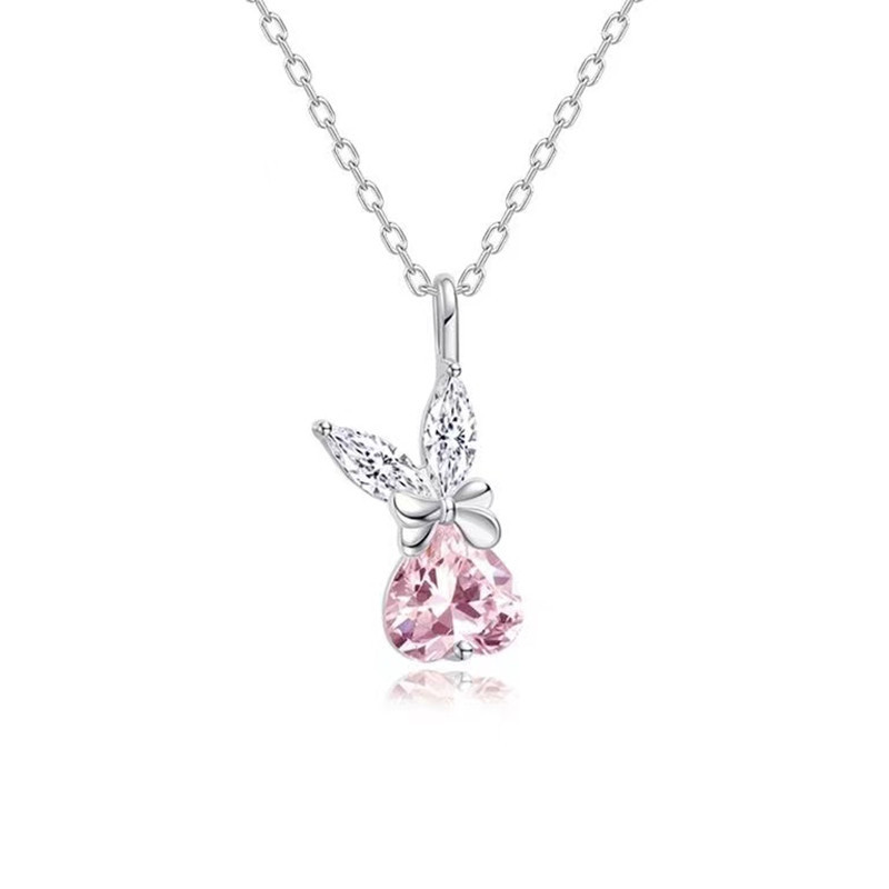 New Arrival Bow Sweet Rabbit Love Necklace Women's Light Luxury Cute Rabbit Pendant Women's Pink Girly Heart Clavicle Chain