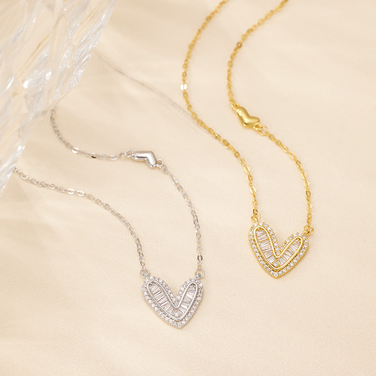 925 silver simple girl style design V-shaped love clavicle chain light luxury sweet style high-grade necklace factory direct sales
