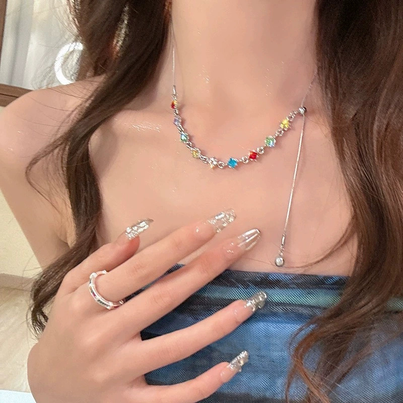 Sweet Color Dopamine Necklace Girly Candy Color Beaded Tassel Clavicle Chain Niche Gentle Sweet Cool Necklace
