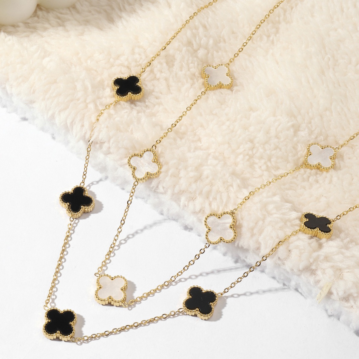 Lucky Four-leaf Clover Five-flower Necklace 18K Gold-plated Titanium Steel Necklace Girls Fashion Simple Korean-style Clavicle Chain All-match