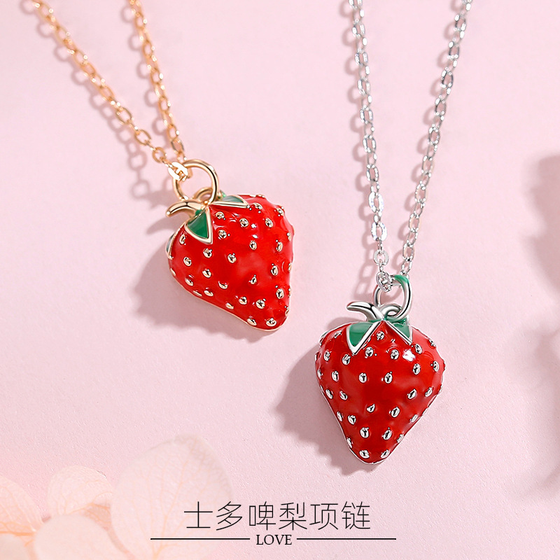 S925 Pure Strawberry Silver Necklace Women's Trendy Decoration Ins Simple Elegant Cute Girl Heart Popular Niche Clavicle Chain