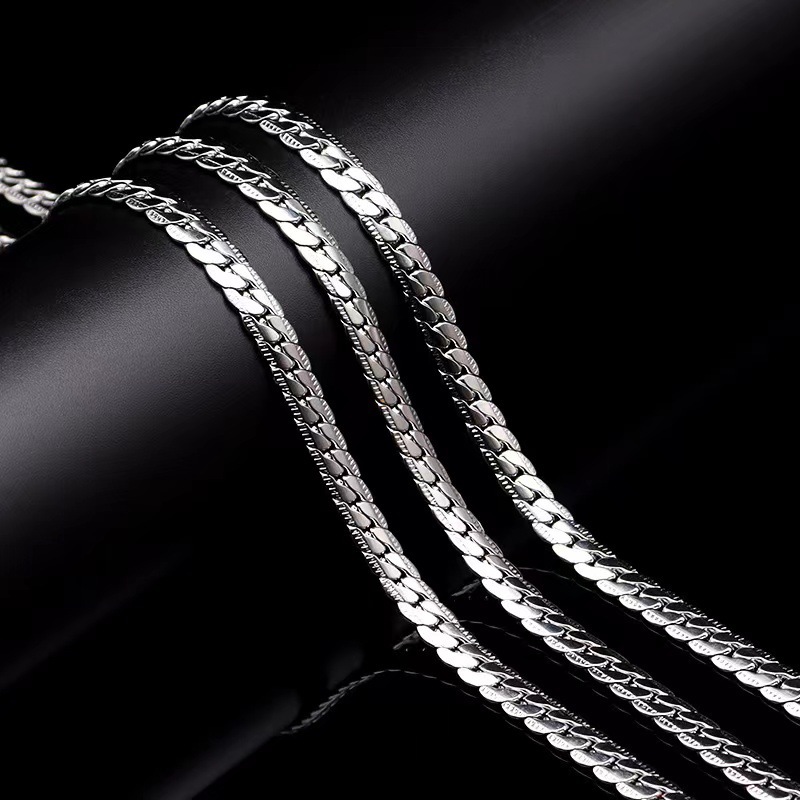 European and American Cuban Necklace Men's ins Hip-hop Chain Titanium Steel Encrypted Embossed NK Chain Girls Clavicle Chain Trendyy Accessories