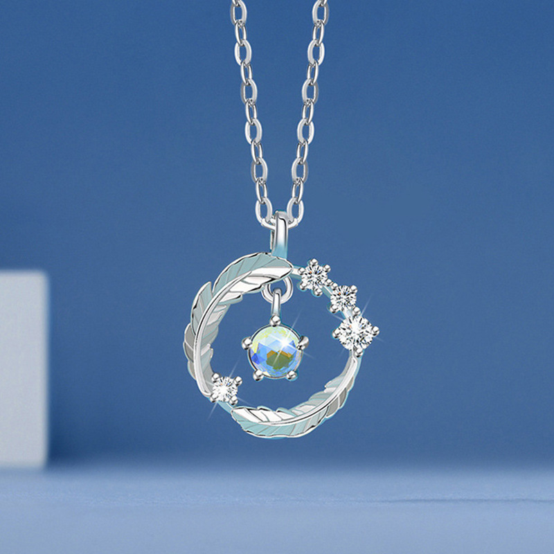 Summer 2023 New feather you accompany colorful Moonstone light luxury feather pendant s925 sterling silver necklace for girls