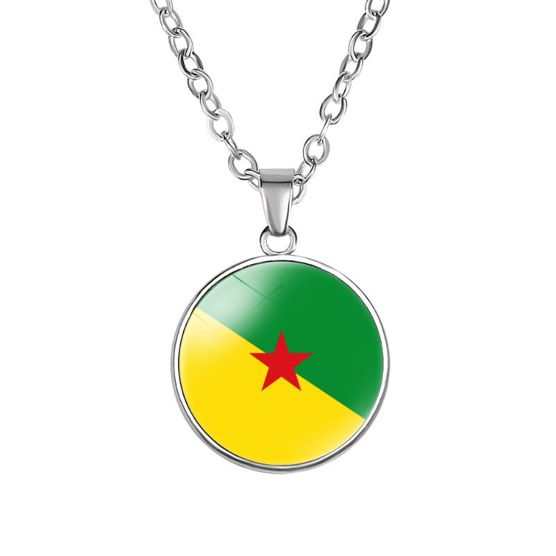 South American Countries Flag Pattern Printed Single-Sided Round Pendant Necklace Women's Fashion Casual Necklace Accessories