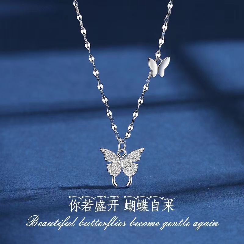 2023 New S925 Silver-Plated Butterfly Necklace for Girls Genuine Popular Clavicle Chain Niche High-End Versatile Style