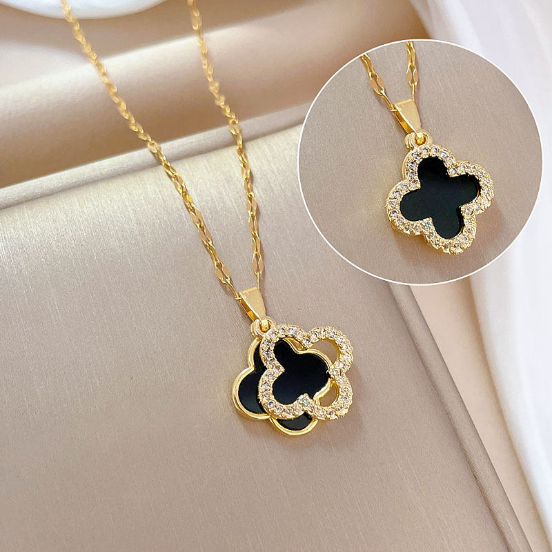 [Titanium Steel] New Diamond-encrusted Double-sided Four-leaf Clover Necklace Female Temperament Female High-grade Sense Shell Clavicle Chain Explosion