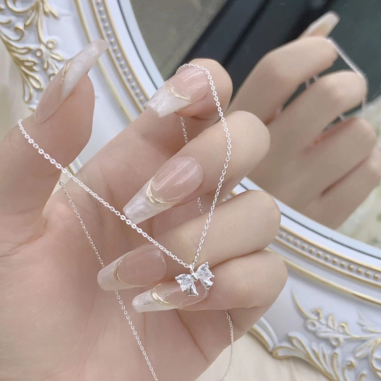 Dreamy Girl Bow Love Zircon Necklace Light Luxury Sparkling Diamond Pure Silver Clavicle Chain High-End Jewelry Wholesale