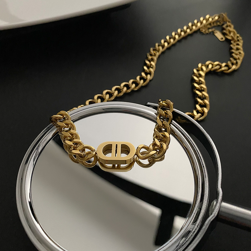 Titanium Steel Non-Fading Cuban Chain Women's Necklace Women's Trendy Brand Hip-Hop Clavicle Chain Street Stylish European and American Clavicle Chain Trend