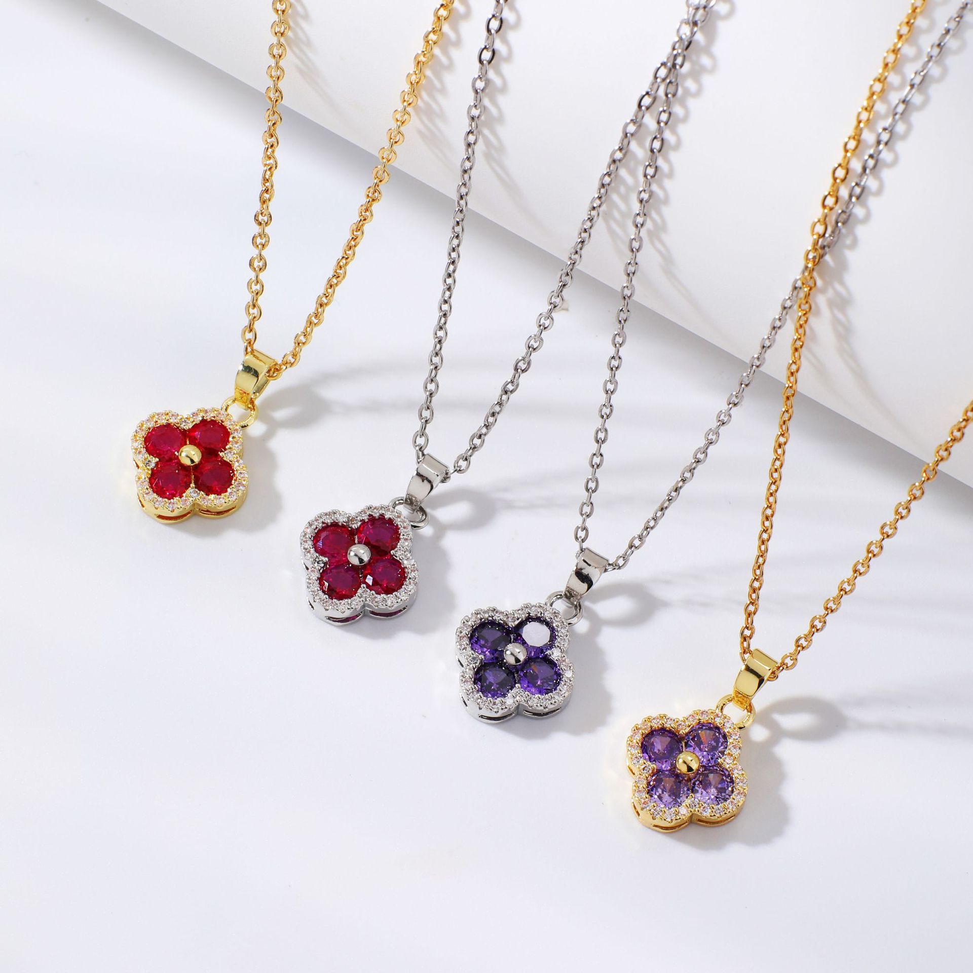 Kérastase Autumn Cross-Border New Girly Style Four-Leaf Clover Colorful Zircon Necklace Women's Versatile Valentine's Day Birthday Gift