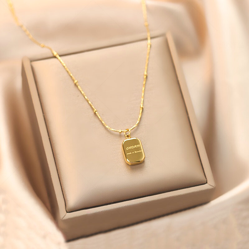 Small Gold Brick Square Pendant Necklace That Does Not Fade Xiaohongshu Popular Same Style Letter Gold Clavicle Chain Jewelry for Women