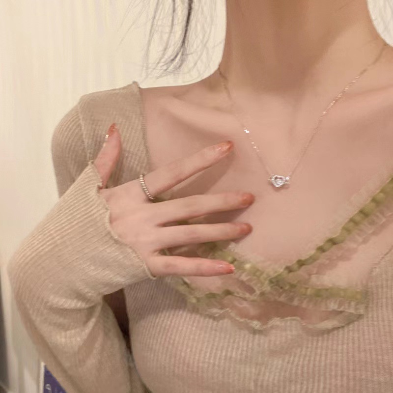 Necklace Women's Sweet Love Necklace Girl's Heart Clavicle Chain Copper Zircon Necklace Internet Celebrant Niche New Accessories