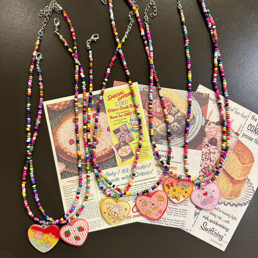 Korean Kidsren's Heart Pendant Acrylic Beaded Necklace Girls Millet Bead Necklace Dopamine Colorful Sweater Chain