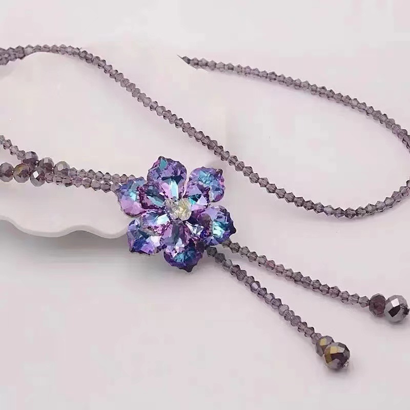 Sweater chain bright crystal long women's high-grade fashion autumn and winter necklace clothes accessories flower tassel pendant
