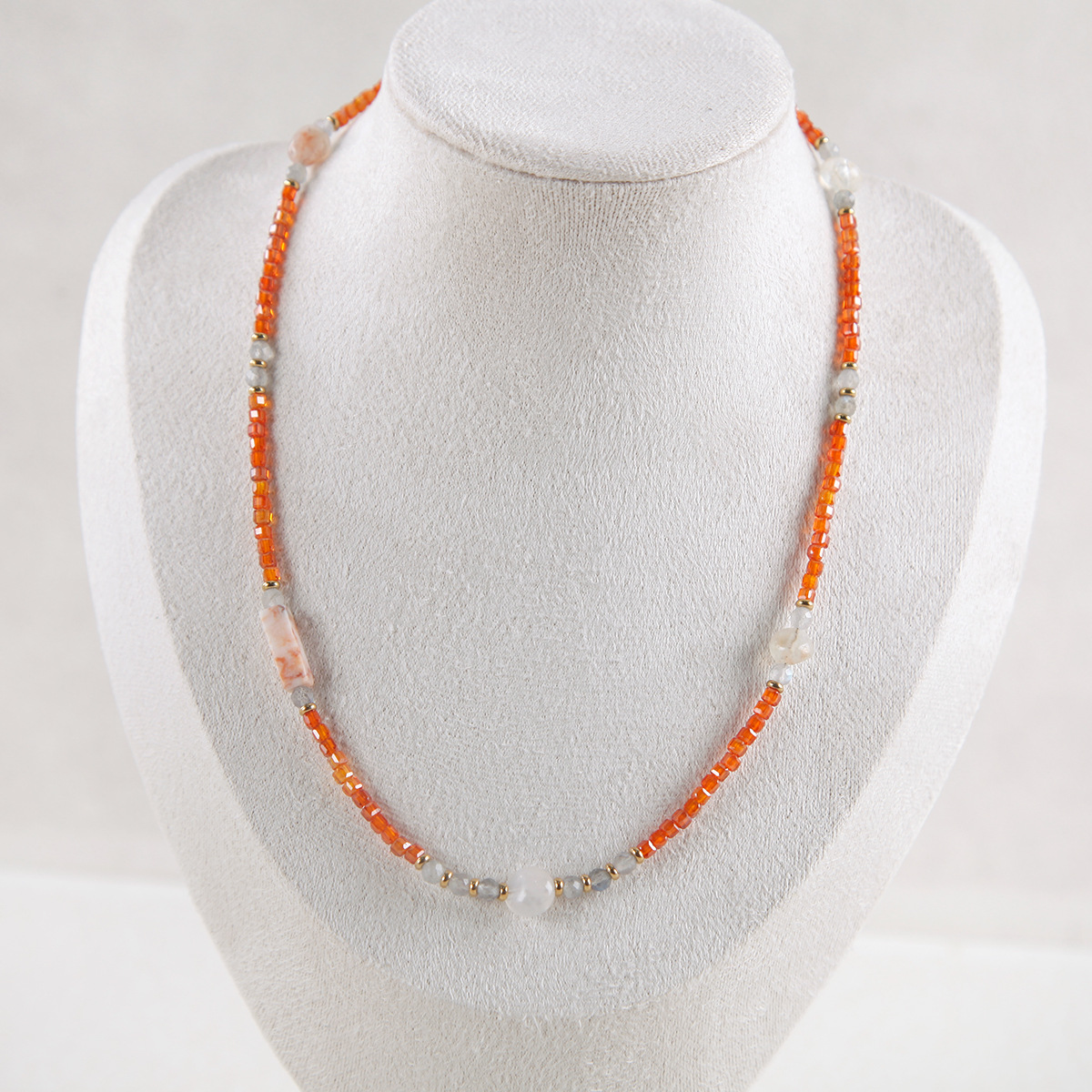 Natural Orange Zircon Yellow Tower Crystal Titanium Steel Tail Chain Niche Beaded Necklace for Women with a Sense of Elegance Clavicle Chain Neck Chain