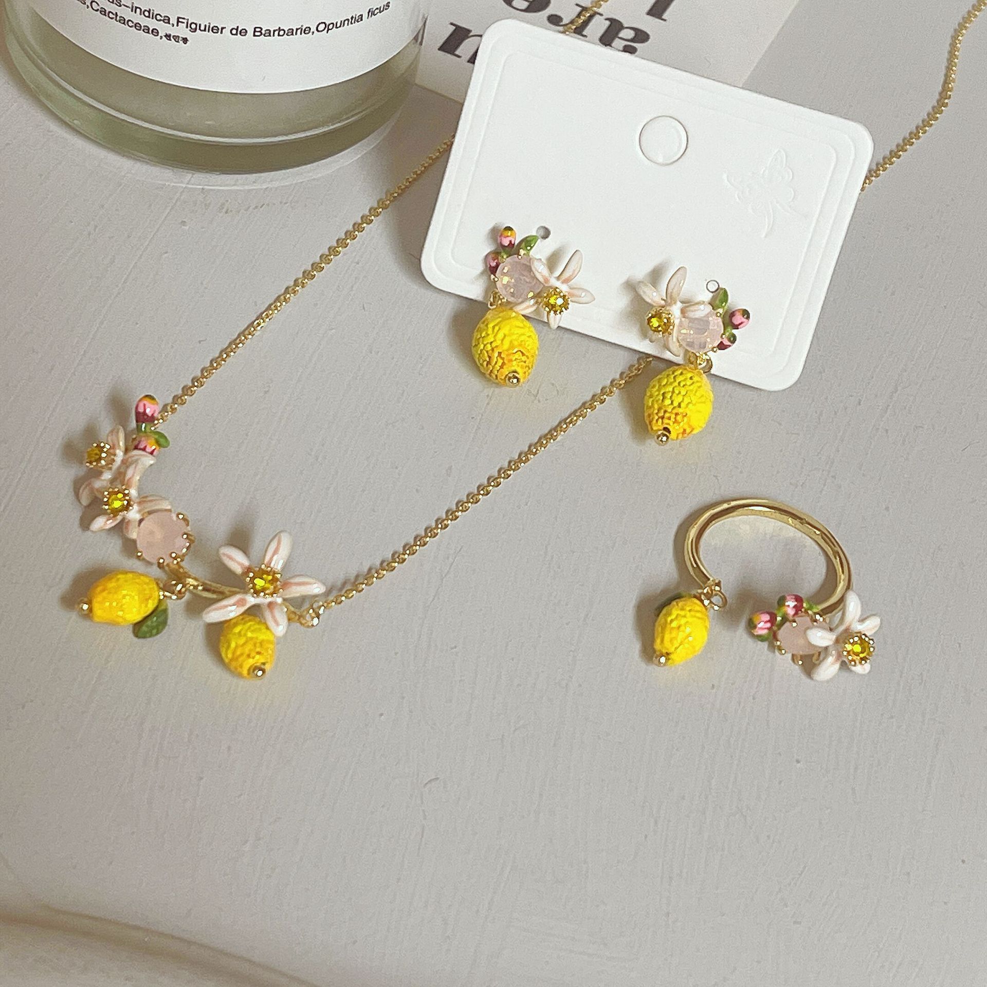 Lemon Flower High-End Fashion Girl Design Necklace Ring Earrings Sweet and Cute Feminine Light Luxury