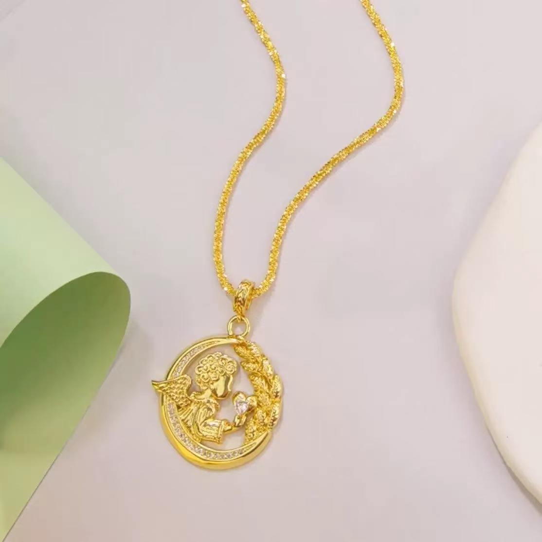 Gold Store Same Style Little Angel Heart Round Light Luxury Simple Elegant Elephant Necklace Women's Versatile Collarbone Chain