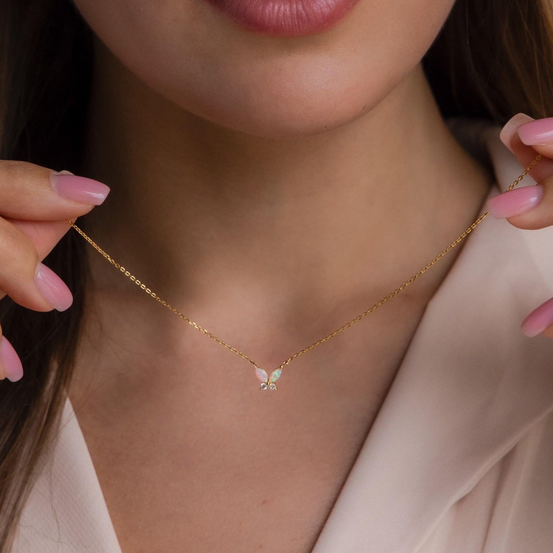 European and American butterfly real opal necklace titanium steel necklace necklace cute girl pink necklace ins style color retaining
