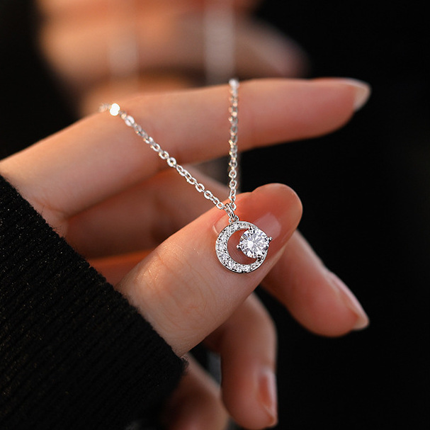 Zircon Star and Moon Necklace for Girls, Niche Accessible Luxury, High-End Design, Fashionable Accessories, Clavicle Chain, Simple, Exquisite and Versatile
