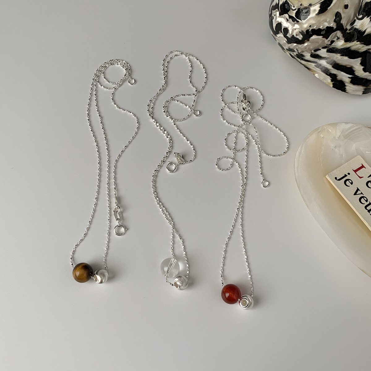 French-Style Natural White Crystal, Red Agate, Tiger's Eye, Cat's Eye, Starry Sky S925 Sterling Silver Necklace for Women m