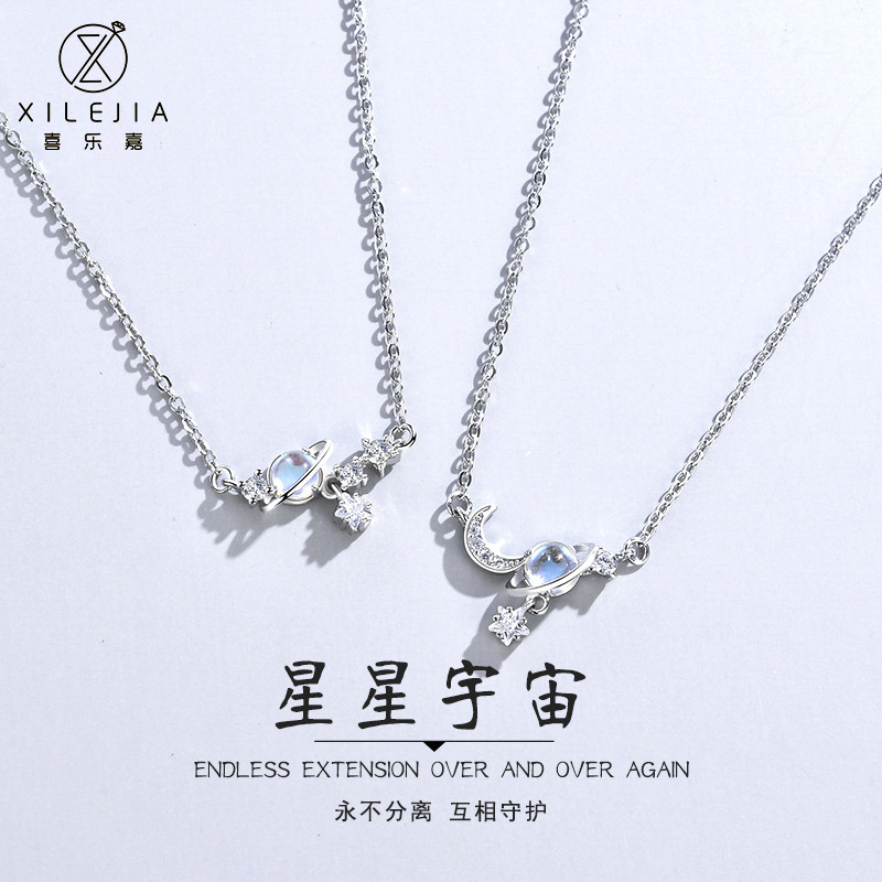 S925 Sterling Silver Niche Design High-grade Light Luxury Star Moon Universe Girlfriend Necklace Girl's Pair of Mori Clavicle Chain