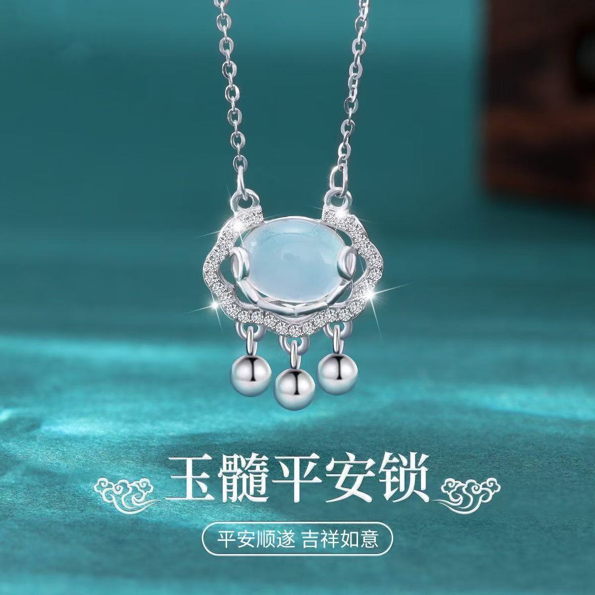 Xiangyun White Chalcedony Peace Lock Necklace White Copper New Chinese Style Light Luxury Niche High-End Gift for Girls Exquisite and Can Be Delivered on Behalf of Others