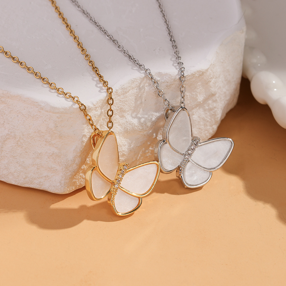 Temperament Micro-Embellished Super Fairy White Mother-Of-Pearl Butterfly Titanium Steel Necklace Cross-Border New Stainless Steel Clavicle Chain Girls Neck Chain