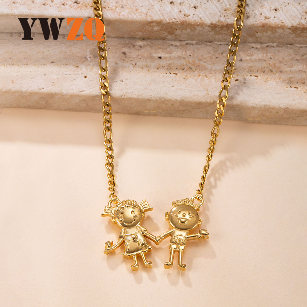 Cross-Border New Stainless Steel Necklace Casting Boys and Girls Sweater Chain Plated 18K Gold Fashion Trendy Titanium Steel Jewelry