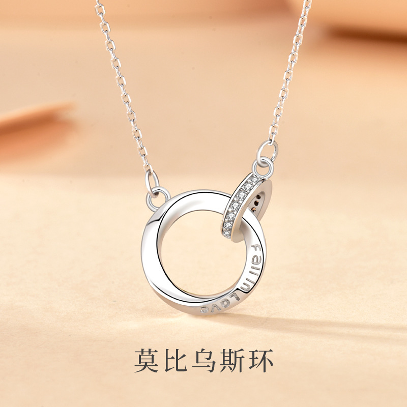 Mobius double ring necklace women's 925 sterling silver Korean style simple clavicle chain commemorative Valentine's Day gift jewelry