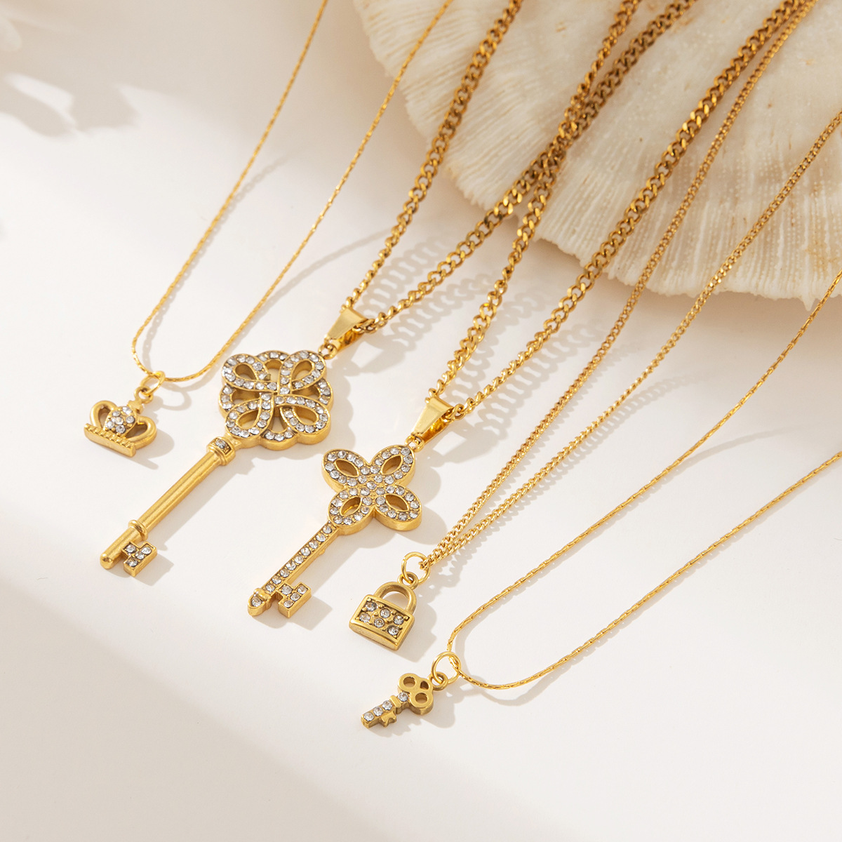 European and American 304 Stainless Steel Necklace Titanium Steel Non-Fading Women's Pendant Key Lock Couple Neck Chain Versatile Clavicle Chain