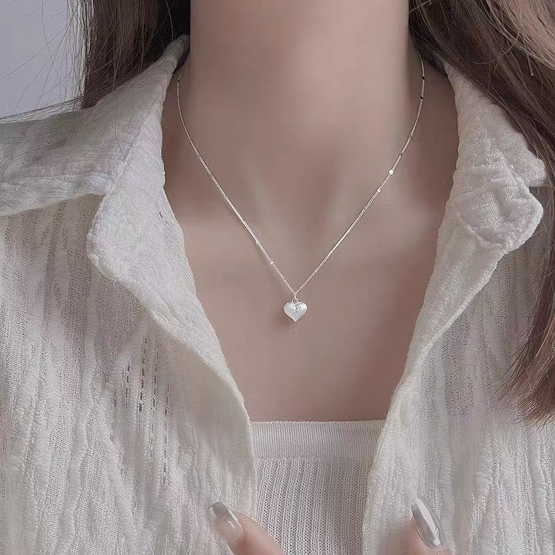 925 Silver Plated Brushed Love Necklace Girls' 2025 New Explosive Clavicle Chain Light Luxury High-end Silver Necklace Chain