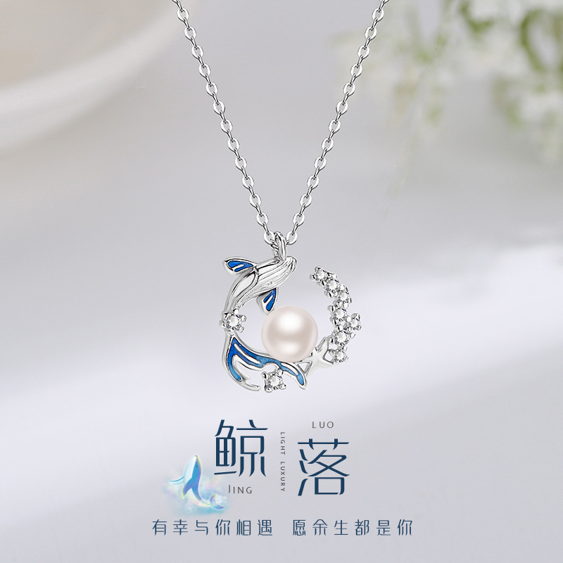 Minsheng Whale Falling Pearl Necklace Whale Collarbone Necklace Pendant for Girls 2024 Light Luxury Niche Birthday Gift
