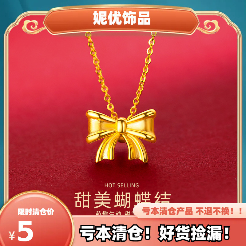 【Clearance Sale, No Returns or Exchanges】Girl's Bowknot Gold-Plated Niche High-End Bowknot Necklace Pendant