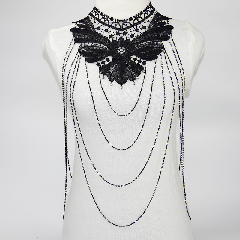 European and American Cross-Border Jewelry New Gothic Women's Necklace Lace Fake Collar Chain Metal Body Chain Cut Out Accessories
